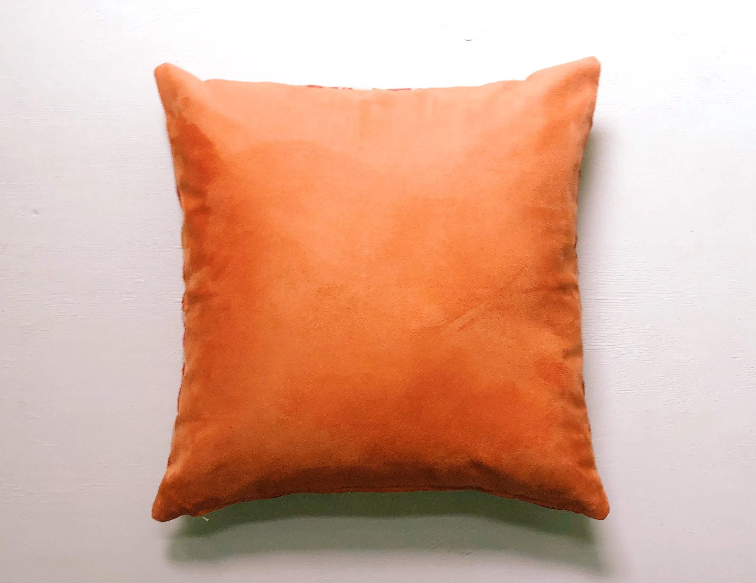 The back is a lighter, orange brushed cotton that feels like suede.